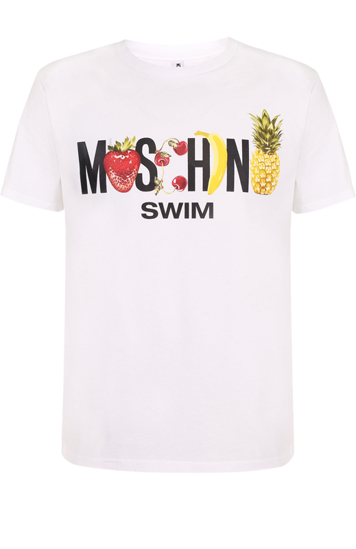 MOSCHINO, Хлопковая футболка с принтом, 8 620 ₽; LOEWE, Плавки-шорты с принтом, 34 350 ₽; HAVAIANAS, Резиновые шлепанцы, 2 790 ₽; DSQUARED2, Текстильная поясная сумка, 12 100 ₽