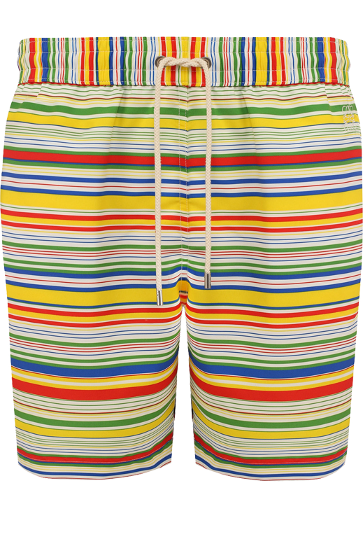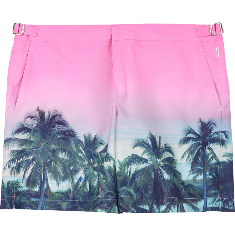 VALENTINO, Хлопковая футболка с принтом, 23 750 ₽; ORLEBAR BROWN, Плавки-шорты с принтом, 22 450 ₽; OFF-WHITE, Текстильная бейсболка Temperature, 12 450 ₽; DIOR, Солнцезащитные очки, 28 550 ₽; NEIL BARRETT, Резиновые шлепанцы, 5 340 ₽