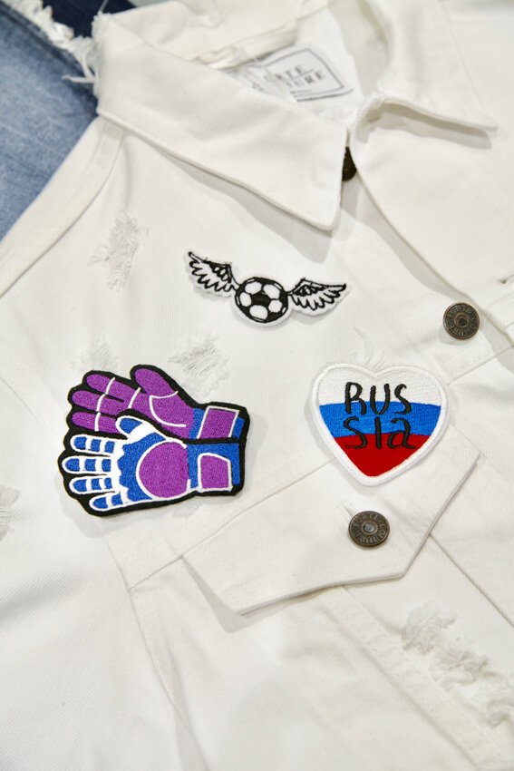 Купленную вещь можно украсить патчем из специальной коллекции, посвященной главному спортивному событию года.