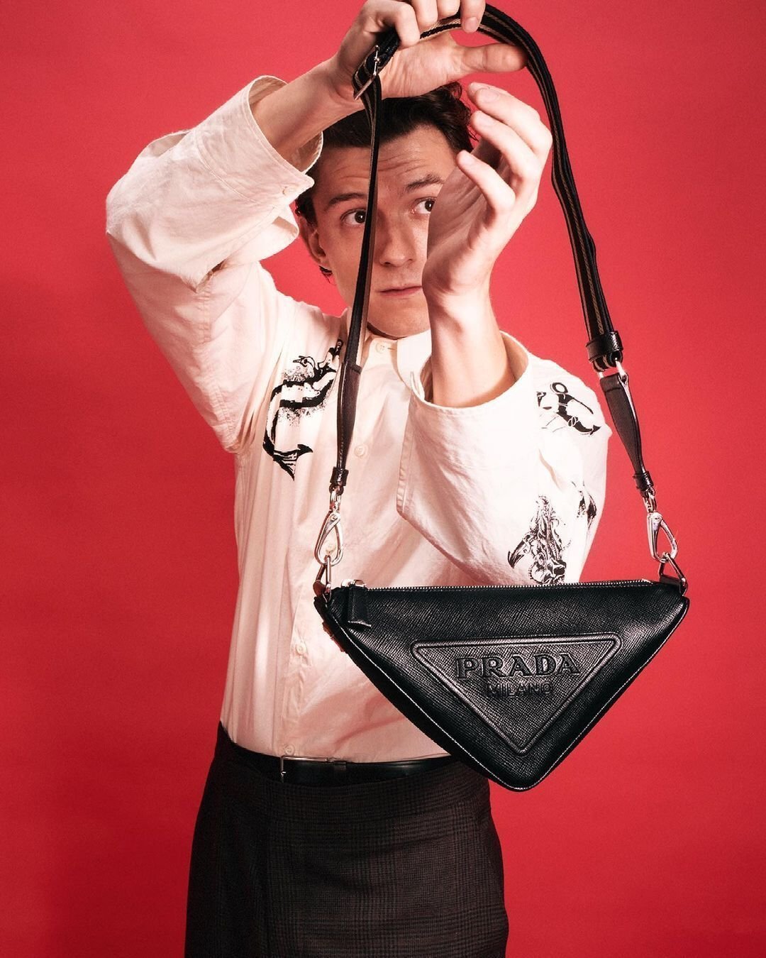 Том Холланд с сумкой Prada Triangle