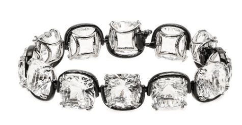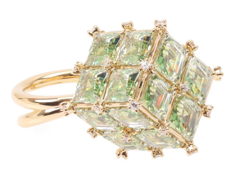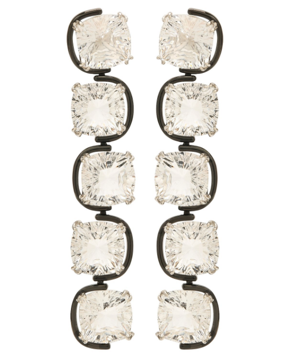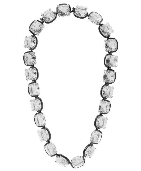 Крупные серьги и кольца, ряды колье с гранеными кристаллами и сразу по несколько браслетов на запястьях — для каждого кадра из кампании модель позирует в десятке украшений. И выглядит это очень эффектно — как в коктейльных образах с корсетами, так и в повседневных с худи. Главное, чтобы все было в одной цветовой гамме.