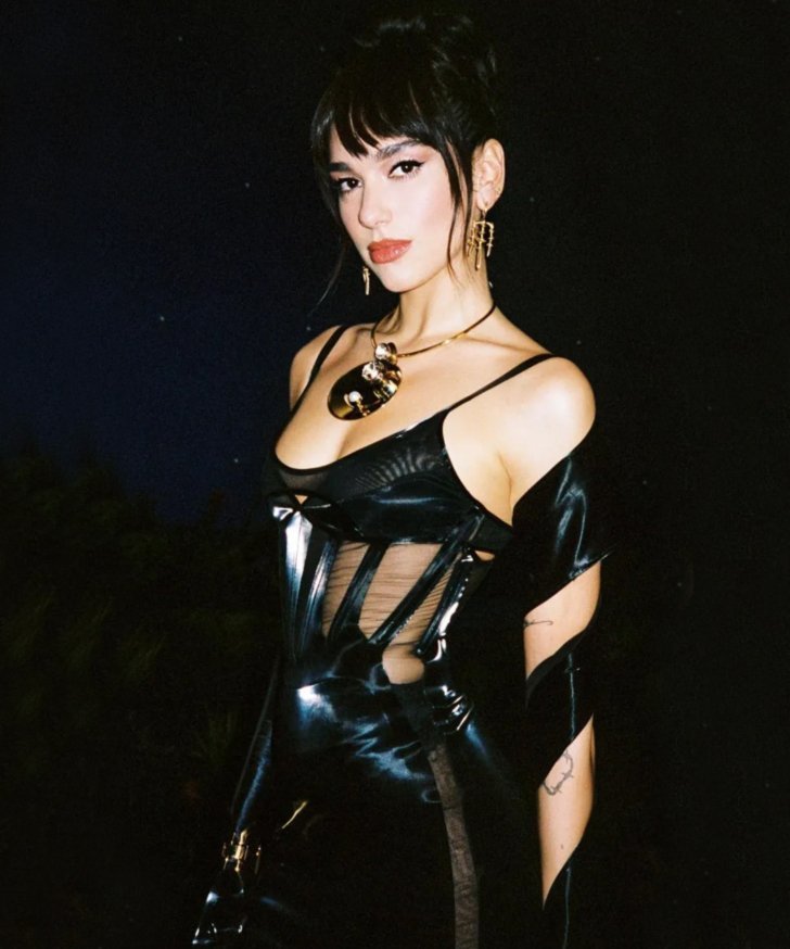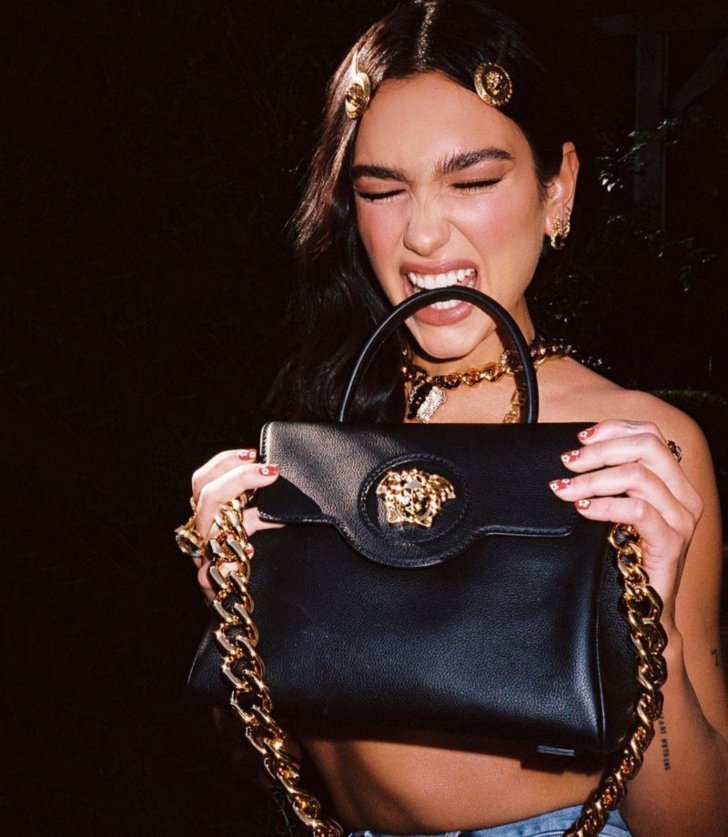 Достичь желаемого эффект Дуа помогают любимые бренды: смелые наряды Saint Laurent, броские вещи Versace, знаковые прозрачные вставки Mugler и яркие хиты Valentino.