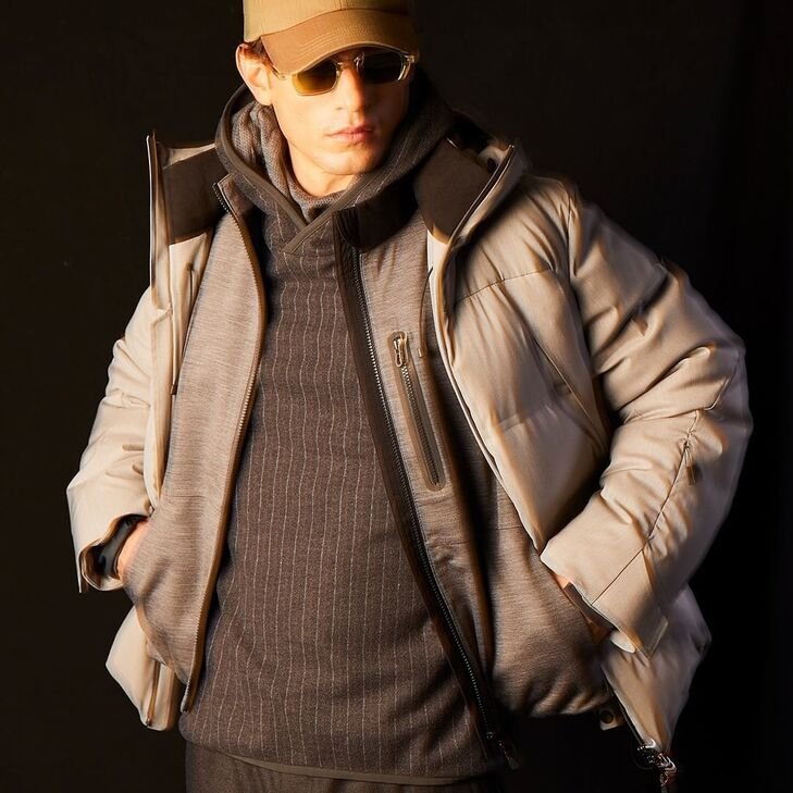 Правильный пуховик сшит из материала с влаго- и ветрозащитой. Чаще всего это нейлон или полиэстер, но могут быть и хлопок или кашемир со специальной пропиткой.