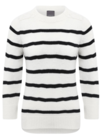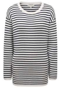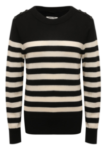 Свитер в черно-белую полоску обладает той же магией, что и тельняшка: ассоциируется с каноническим гардеробом француженок. Лучшая пара к такому — джинсы на пуговицах: у них тот же «матросский» стиль.