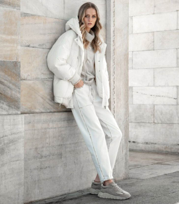 Тем более в этом сезоне есть из чего выбрать: в новых коллекциях множество кремовых свитеров и «сливочных» пуховиков. Не составит труда подобрать и обувь с сумкой в тон одежде.
