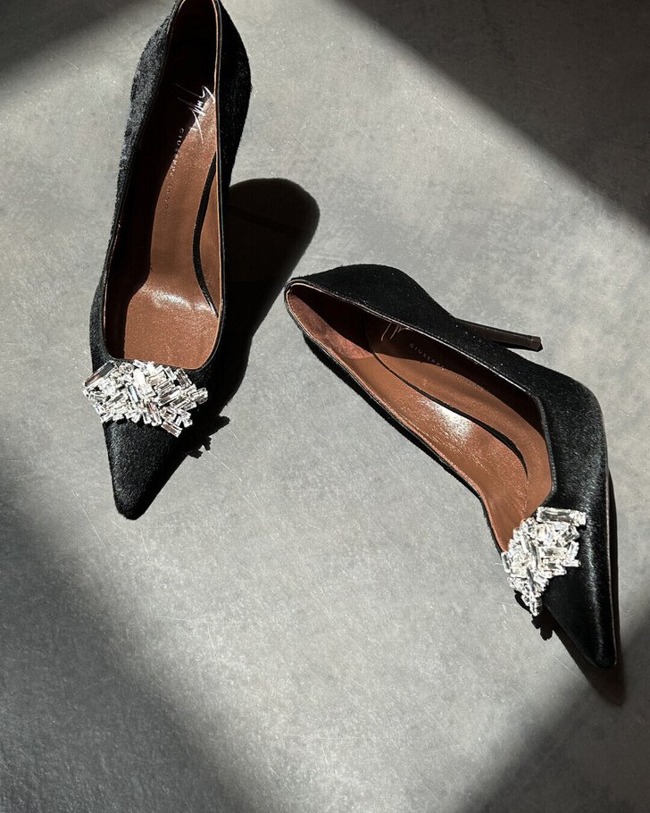 Обувь с кристаллами и пайетками — покупка номер один на старте сезона предновогодних вечеринок. Сияющие детали создадут праздничное настроение, обязательно обратят на себя внимание и охотно возьмут на себя роль главного акцента в образе — что, кстати, очень удобно, если сам наряд будет лаконичным.