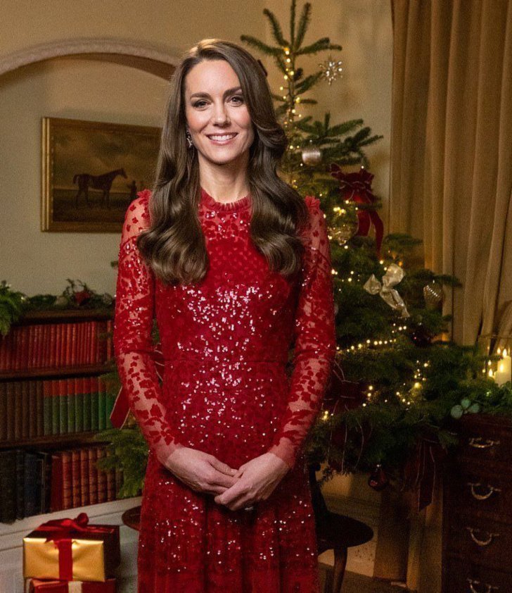 По мнению принцессы Уэльской, уютный трикотаж — лучший наряд, чтобы позировать у праздничной елки. Идеально, если палитра и декор кардигана или пуловера совпадают с эстетикой Нового года (красный цвет, сияющие пуговицы, фактурный арановый узор и т. д.).