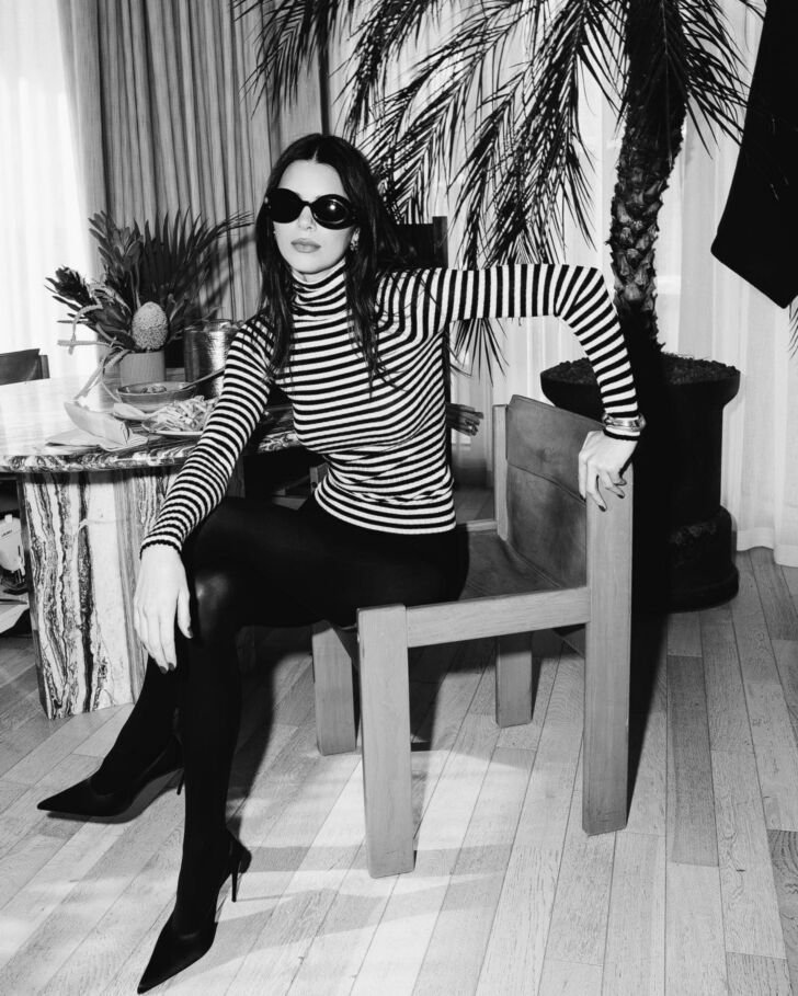 Причем не только повседневных с джинсами. Супермодель Кендалл Дженнер, например, сочинила с «матросской» водолазкой практически коктейльный наряд.