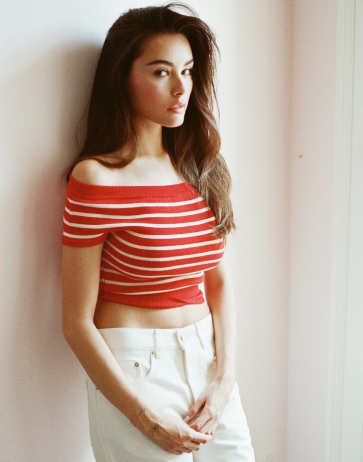 Поэтому в гардеробе топы должны быть на любой случай: чувственные бра, романтично открывающие плечи, фактурные вязаные и, конечно, универсальные белые.