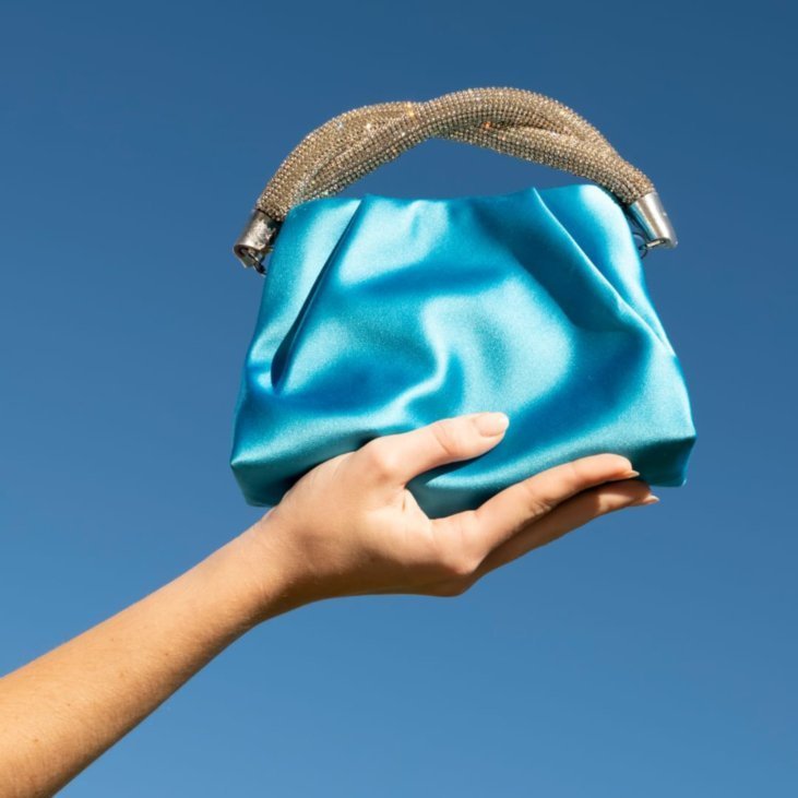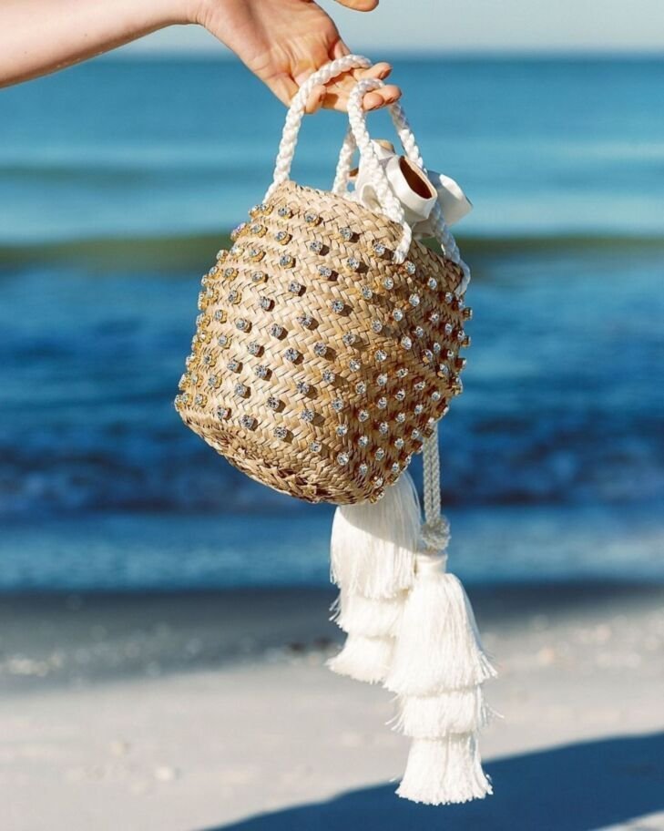 Миниатюрная сумочка с кристаллами или металлическим блеском — идеальная спутница для пляжной вечеринки.