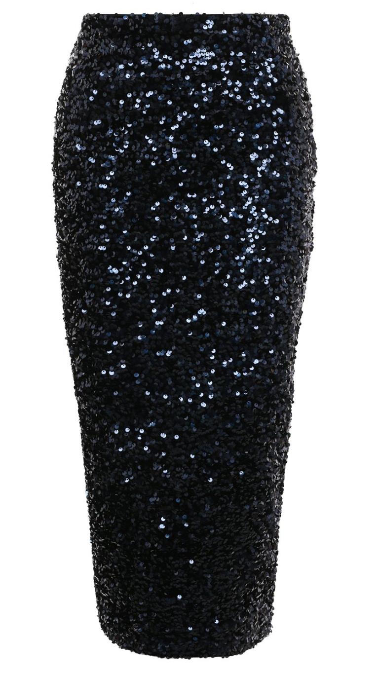 В новых коллекциях невозможно не обратить внимание на миди-юбки, украшенные пайетками и кристаллами. Дожидаться новогодних праздников, чтобы примерить их, необязательно. Носите нарядные модели каждый день и не бойтесь выглядеть «слишком»: сияние успокоят сдержанная длина, однотонный свитер и лаконичные сапоги.