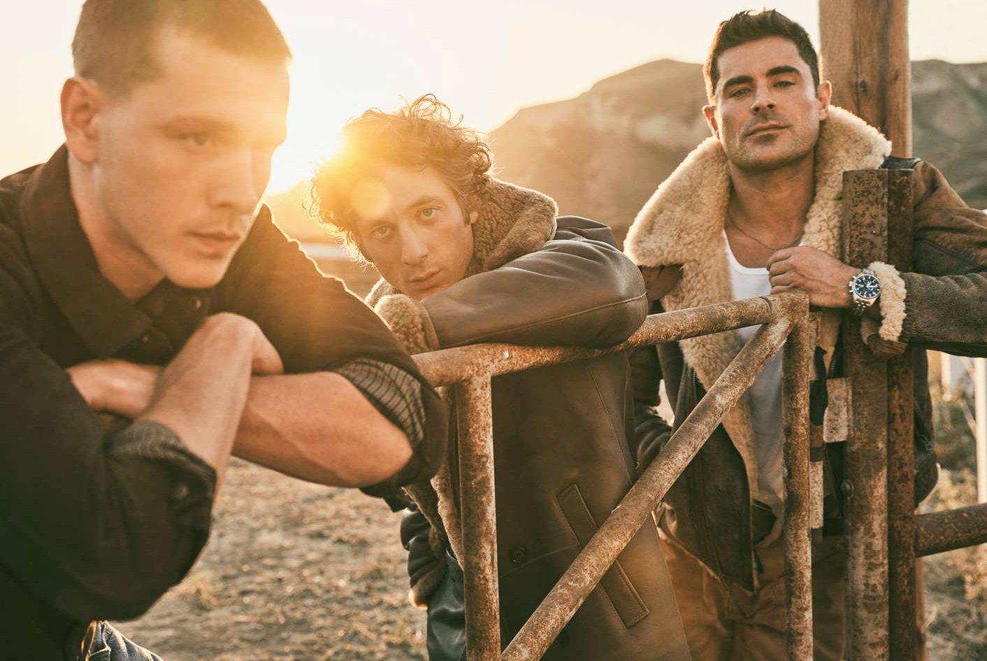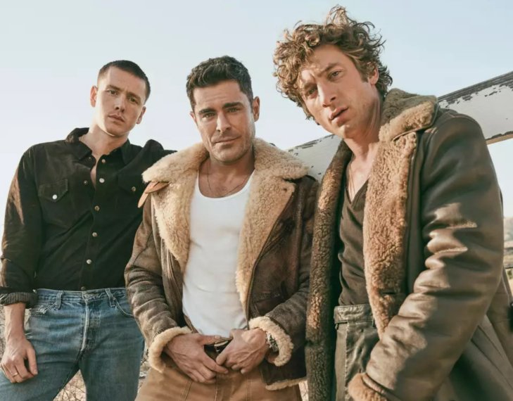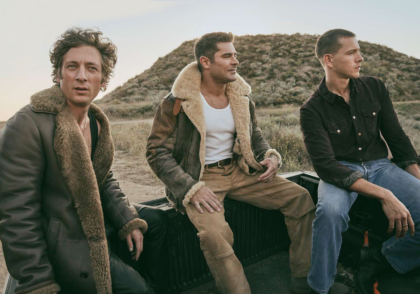 Кроме того, короткая дубленка придает образу мужественность и даже брутальность — о чем напомнили Зак Эфрон, Джереми Аллен Уайт и Харрис Дикинсон в фотосессии, приуроченной к премьере фильма «Стальная хватка» о братьях-рестлерах.
