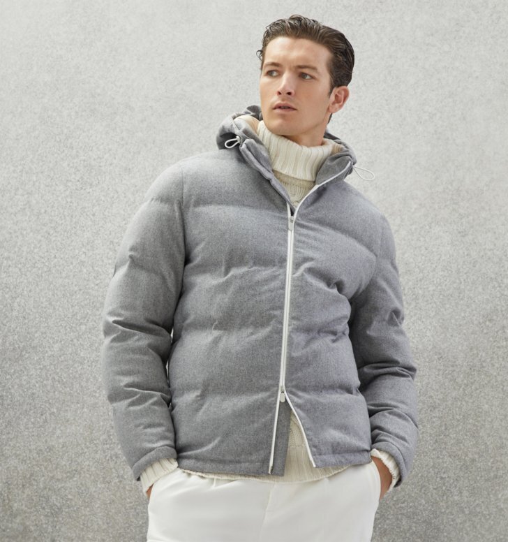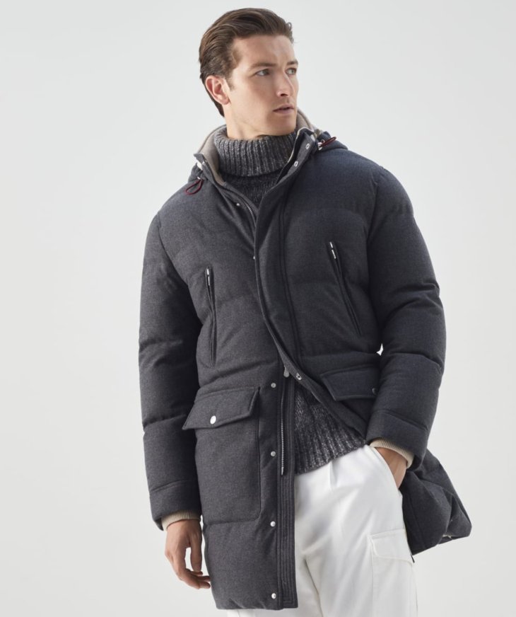 Дизайнер Брунелло Кучинелли родом из солнечной Италии. Но тем не менее именно в его коллекциях можно найти вещи, идеально подходящие для русских морозов. Речь о пальто и куртках из шерсти и кашемира — самых теплых материалов. Превосходные согревающие качества и у пуховиков Brunello Cucinelli — спасибо наполнителю из гусиного пера, который не пропускает ветер и холод.