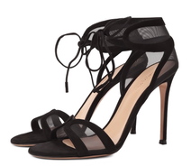 Тонкие ремешки, обвивающие щиколотку завязки, сетка и кружево делают босоножки, мюли и лодочки очень женственными. А в сочетании с высоким каблуком такие пары выглядят особенно чувственно.