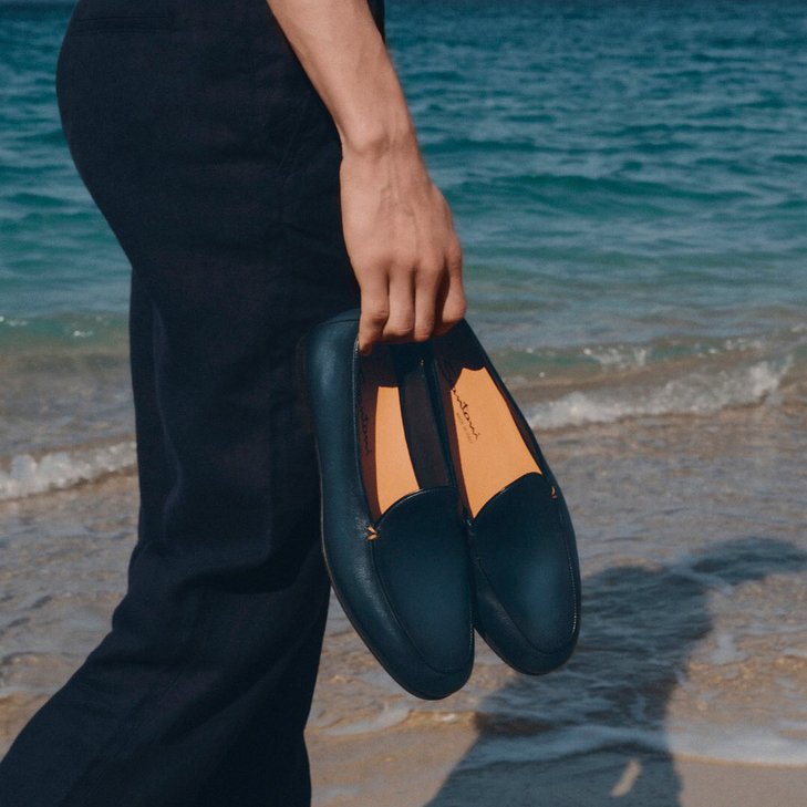 В коллекции Santoni есть пары обуви для любого сценария лета. Для деловых будней это оксфорды, лоферы и монки различных оттенков. Для выходных — кеды и кроссовки. А для пляжного отдыха — эспадрильи и сандалии.