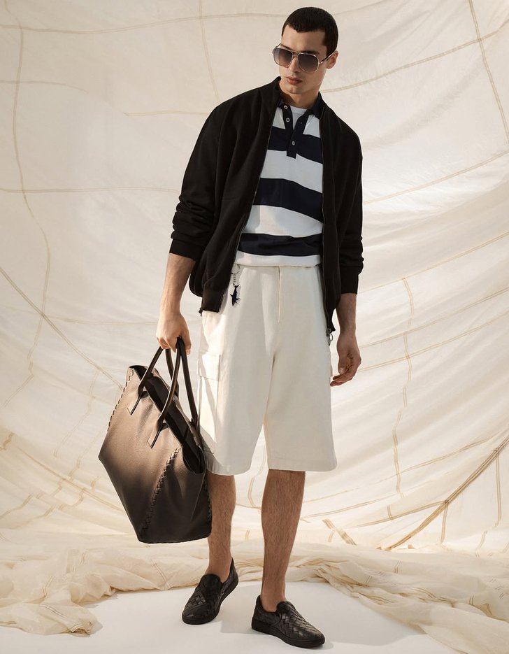 Когда на улице +30, шорты становятся универсальной сезонной базой. Для города лучше всего подойдут модели, которые не выглядят слишком по-отпускному: до колена со стрелками или джинсовые, которые можно сочетать с рубашкой или лаконичной футболкой. А на отдыхе лучшим вариантом станут трикотажные, карго и, конечно, плавки.
