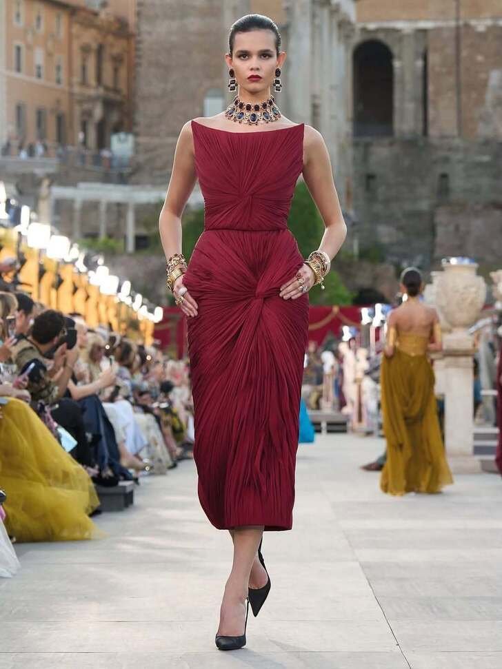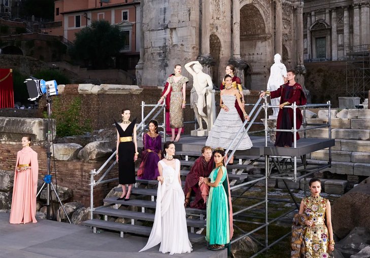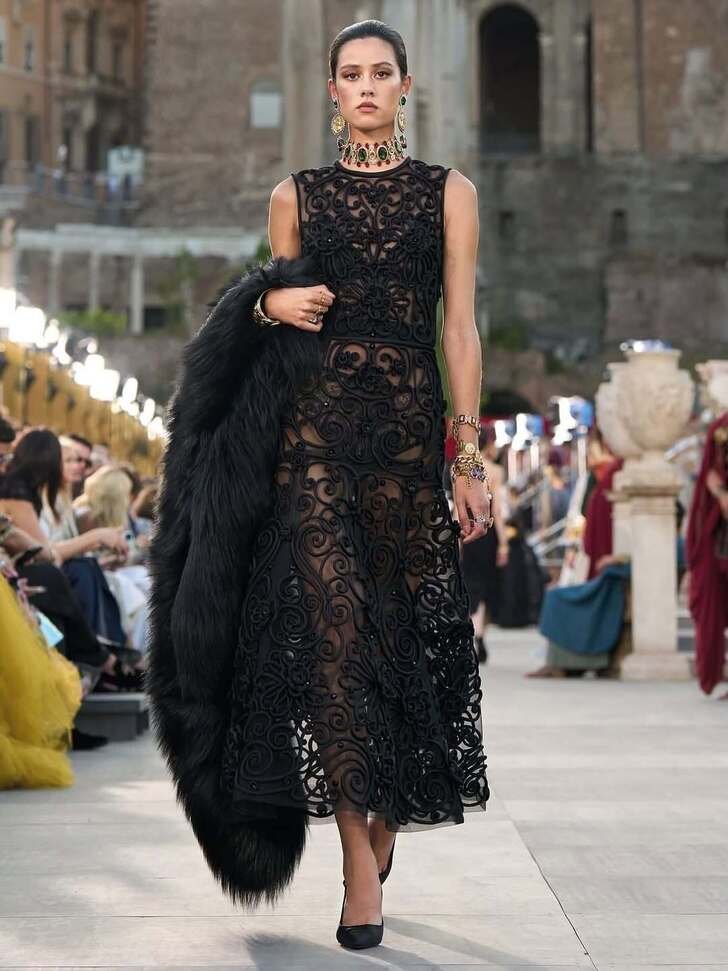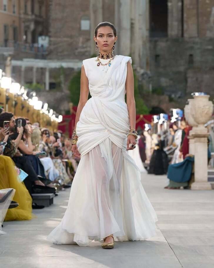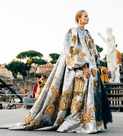 На показе Dolce & Gabbana Alta Moda в Риме переплелись история, мифы и магия кино Вечного города. Используя свои любимые приемы, дуэт Доменико Дольче и Стефано Габбана поведал историю об античных богинях, La Dolce Vita и эпохе «Голливуда на Тибре».