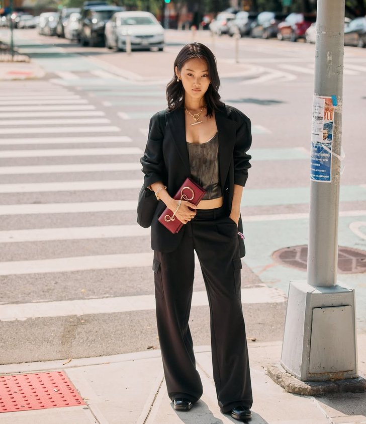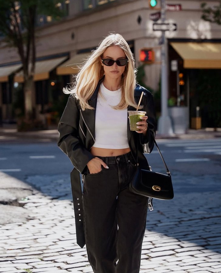 Фаворитами звезд street style на Неделе моды в Нью-Йорке стали кожа, деним и жакеты — всегда актуальные вещи, с которыми можно составить множество модных комбинаций. А главным украшением осенних образов стали, конечно, брендовые сумки.
