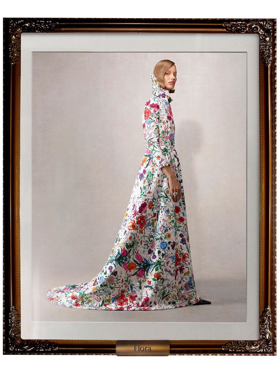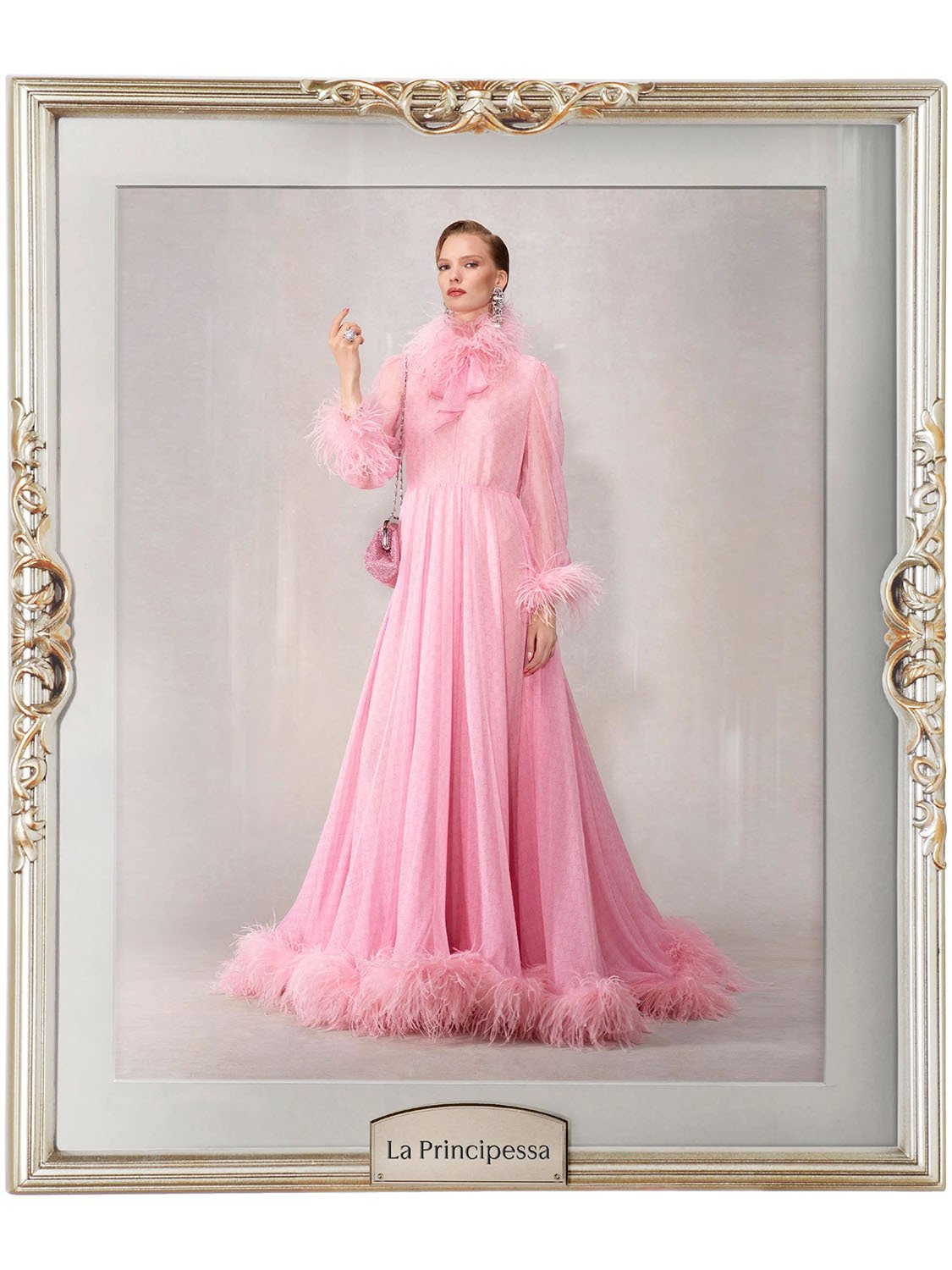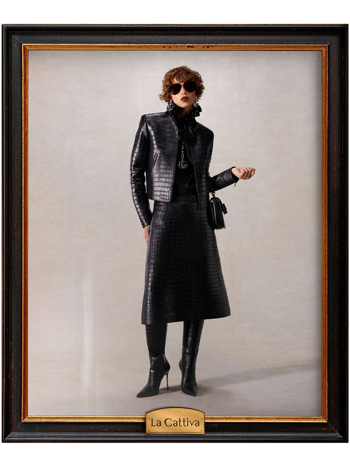 Новый креативный директор Gucci Демна Гвасалия представил свой дебютный лукбук для бренда. В коллекцию весна-лето 2026 под названием La Famiglia вошли как драматичные наряды из кожи, так и вечерние платья в пол с пышным декором перьями. Каждый образ помещен в раму и подписан: «Принцесса», «Инфлюенсер», «Сноб», «Примадонна» и т. д.