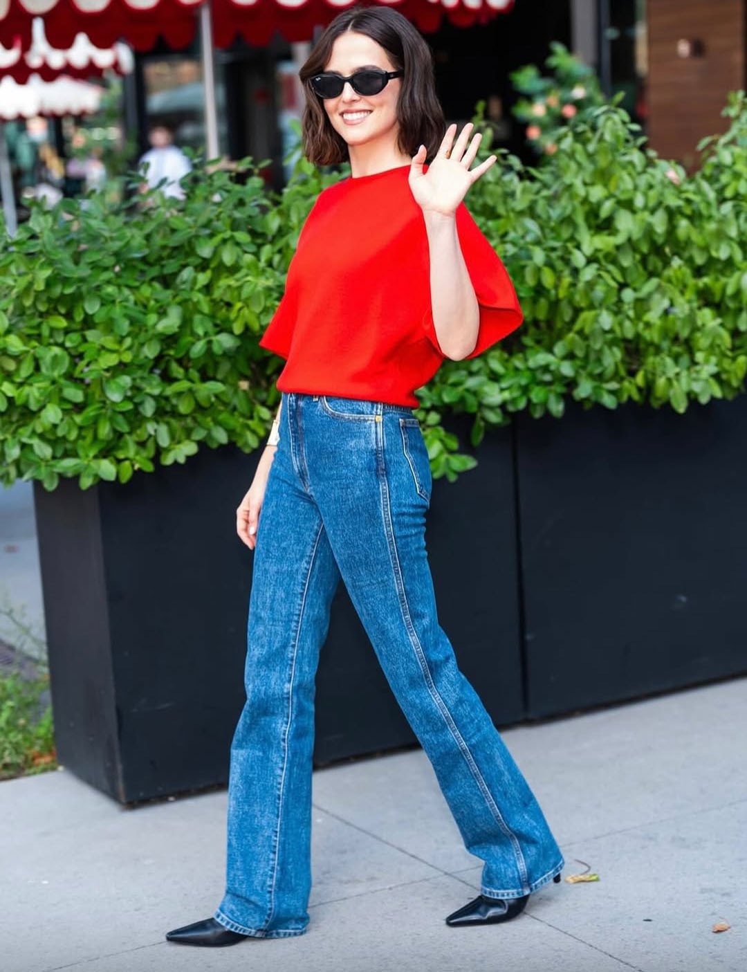 Алый — всегда эффектный выбор, а осенью этот оттенок еще и смотрится особенно гармонично. Этим весь сентябрь и октябрь активно пользуется Зои Дойч: актриса обязательно добавляет хотя бы один ярко-красный акцент в образ, отправляясь на премьерные показы своего нового фильма «Третья лишняя» и просто гуляя по Нью-Йорку.