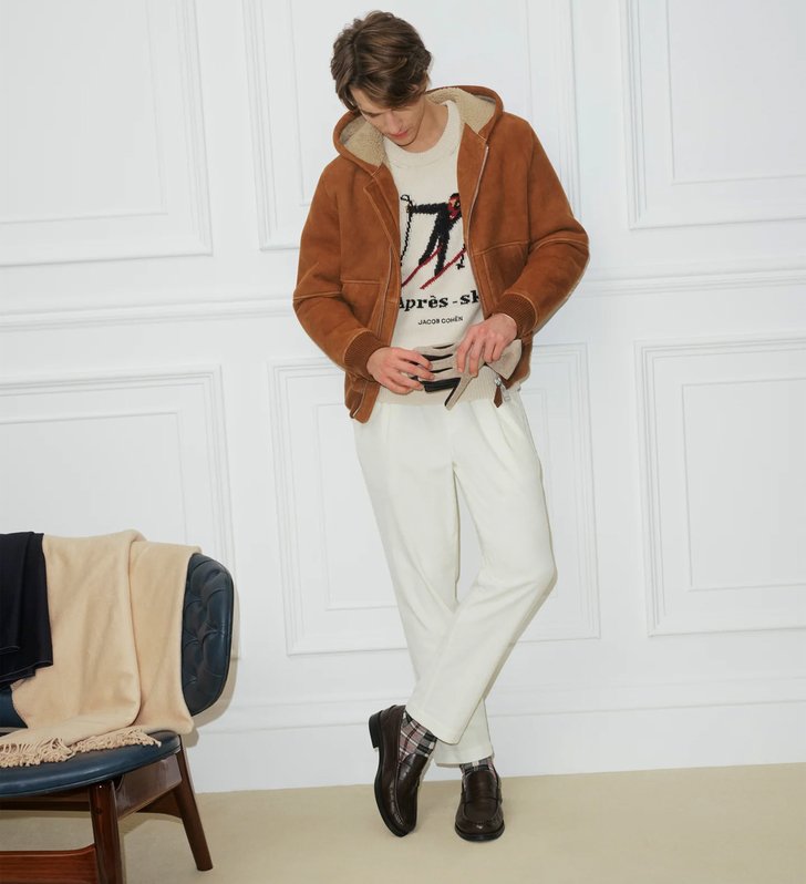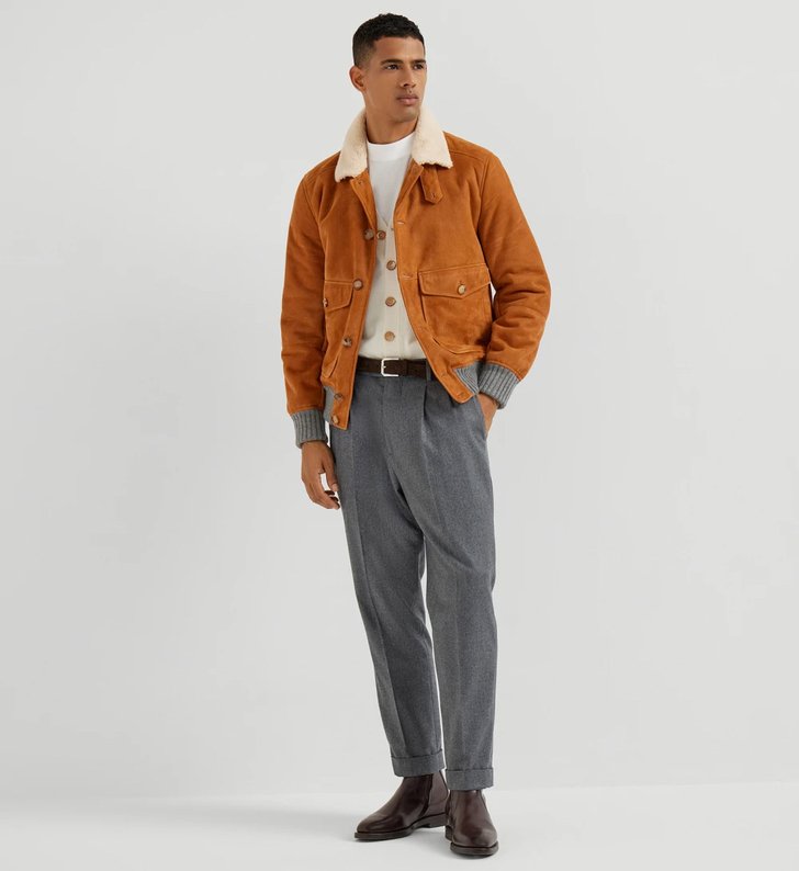 Короткая дубленка — практичная теплая вещь, которая хорошо сочетается и с джинсами, и с классическими брюками. А главное ее преимущество — легкость по сравнению с длинными моделями. Это особенно актуально, если вы много времени проводите за рулем или просто цените свободу движений.