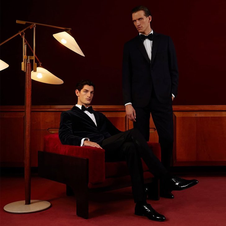 Впереди месяц коктейлей, ужинов и вечеринок. Самый элегантный вариант для таких мероприятий — смокинг или бархатный пиджак с белоснежной сорочкой и бабочкой. Эффектно завершат образ классическая обувь, роскошный кожаный ремень и благородный аромат.