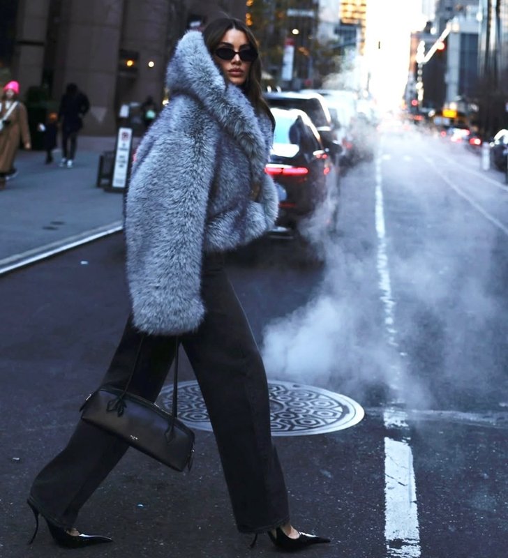 Главные составляющие этого эффектного стиля — объемный мех, блеск, крупные украшения, шелк и другие роскошные фактуры, броские аксессуары и принцип «много — не мало».