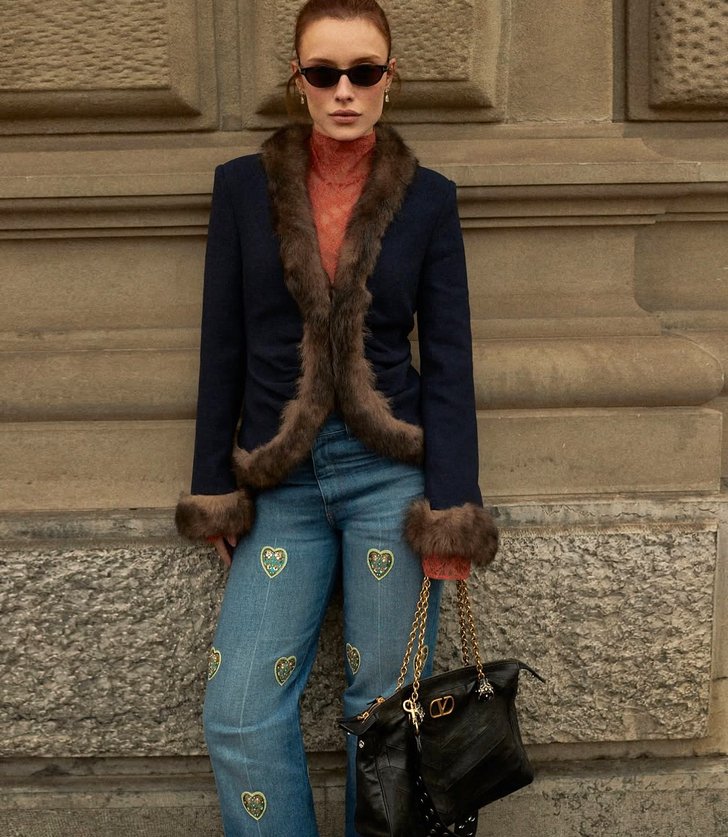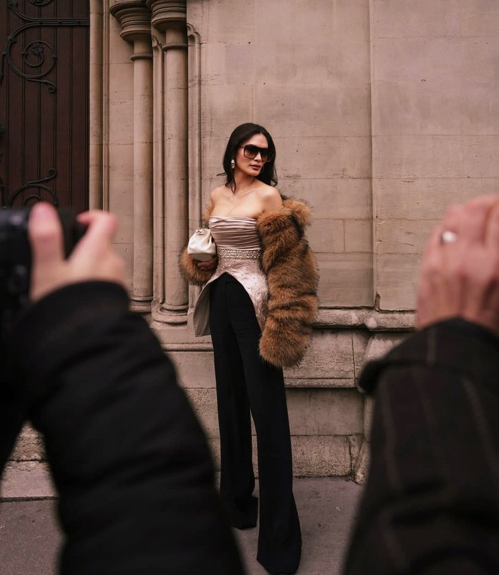 Инфлюэнсеры делают ставку на максимализм. На Неделе Высокой моды в Париже тренд был особенно очевиден. Модницы появлялись на показах и вечеринках в мехах, кружеве и со щедро декорированными сумками. Даже джинсы были не простые, а с аппликациями и бисером.