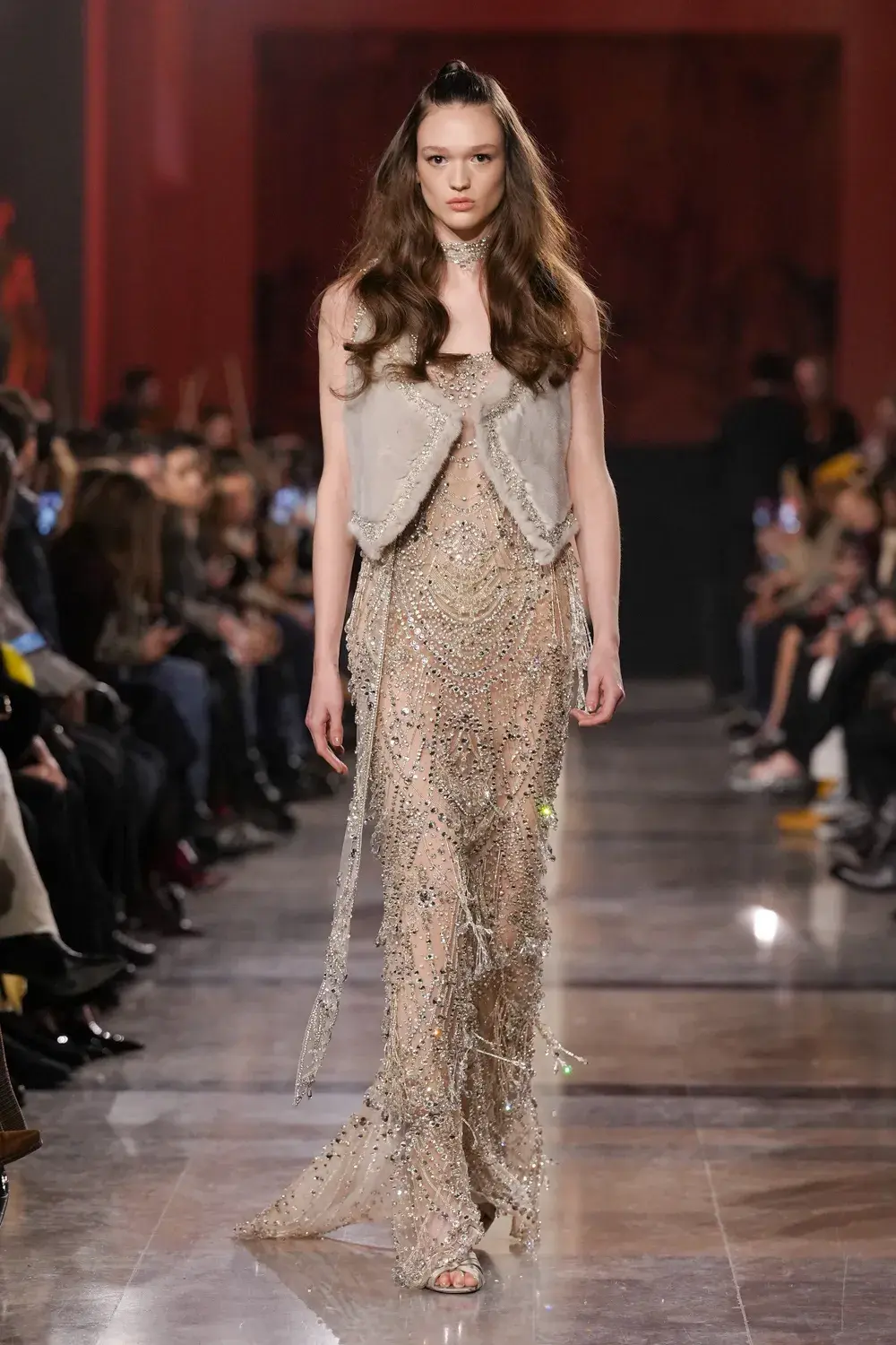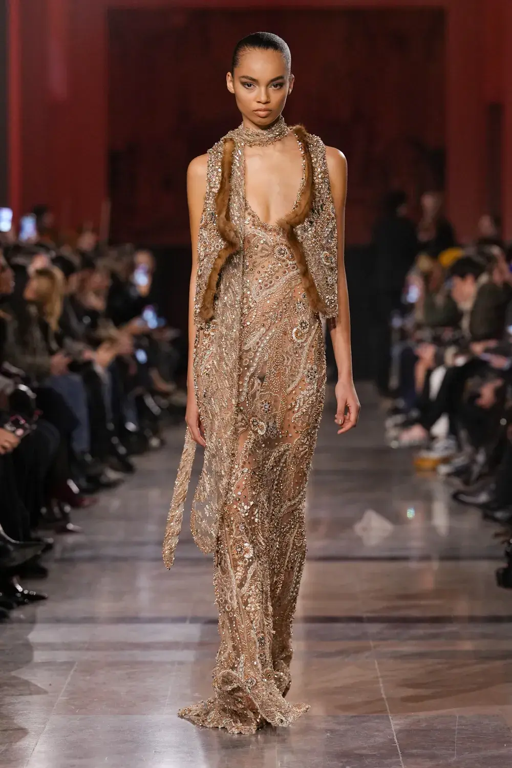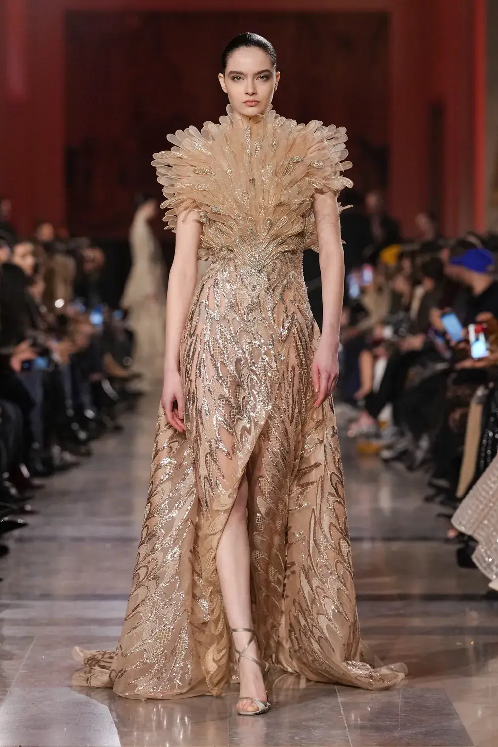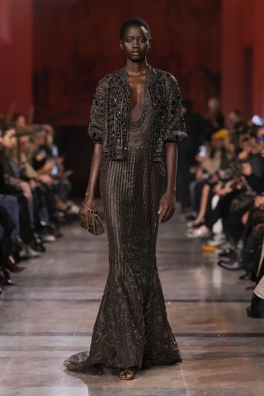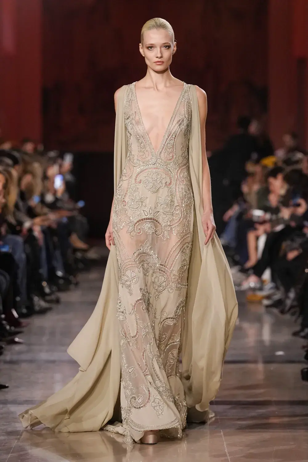 Показ Elie Saab Haute Couture весна–лето 2026 стал демонстрацией утонченной силы, в которой привычная романтическая эстетика дома обрела более радикальный характер. Коллекция строится на четких, архитектурных силуэтах: корсетные лифы, вытянутые линии, подчеркнутые плечи и драматичные шлейфы рисуют образ женщины, одновременно чувственной и властной.