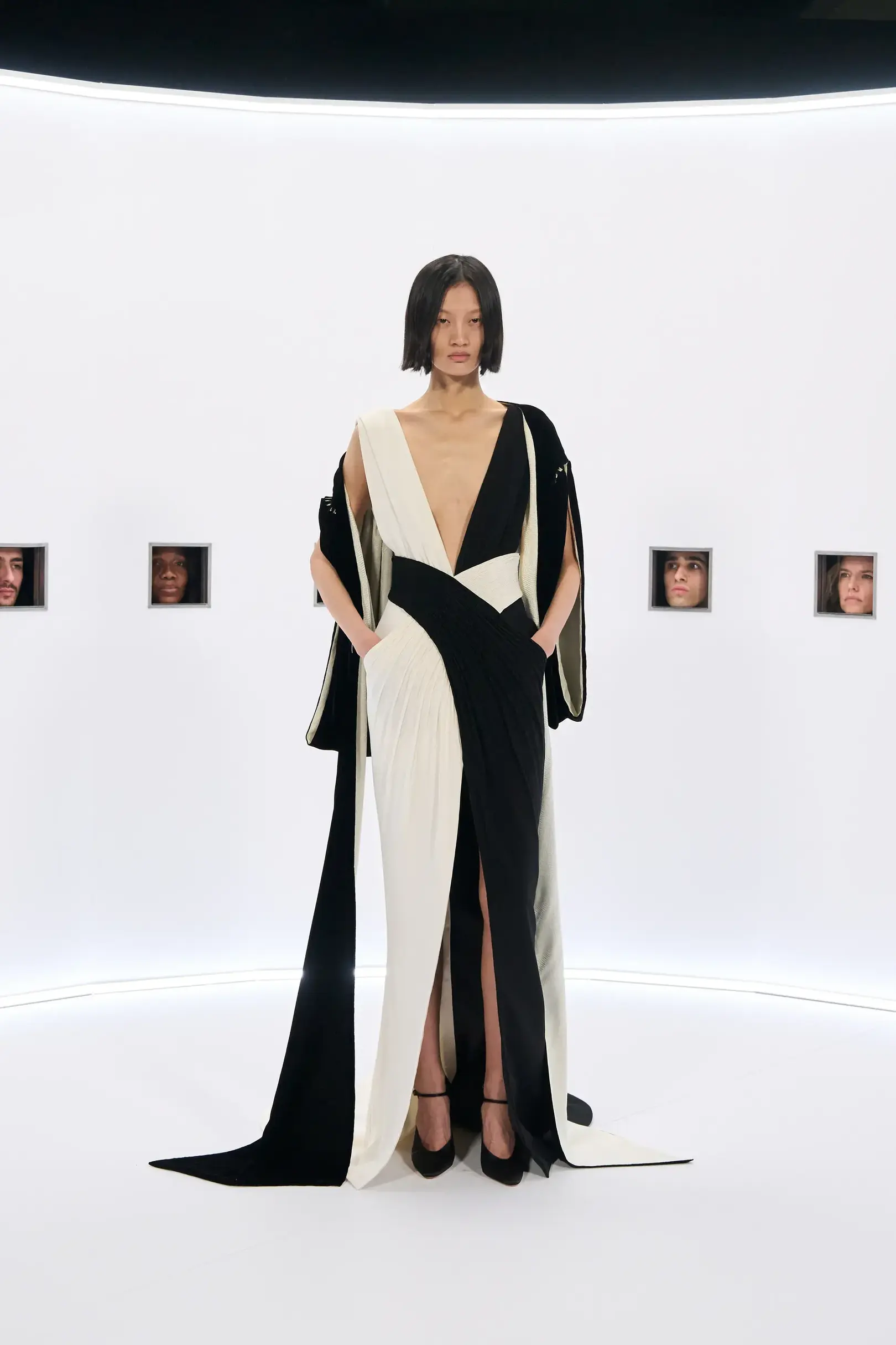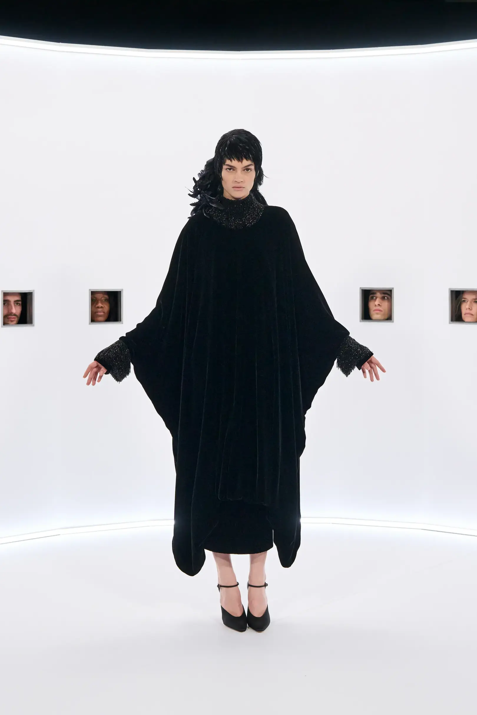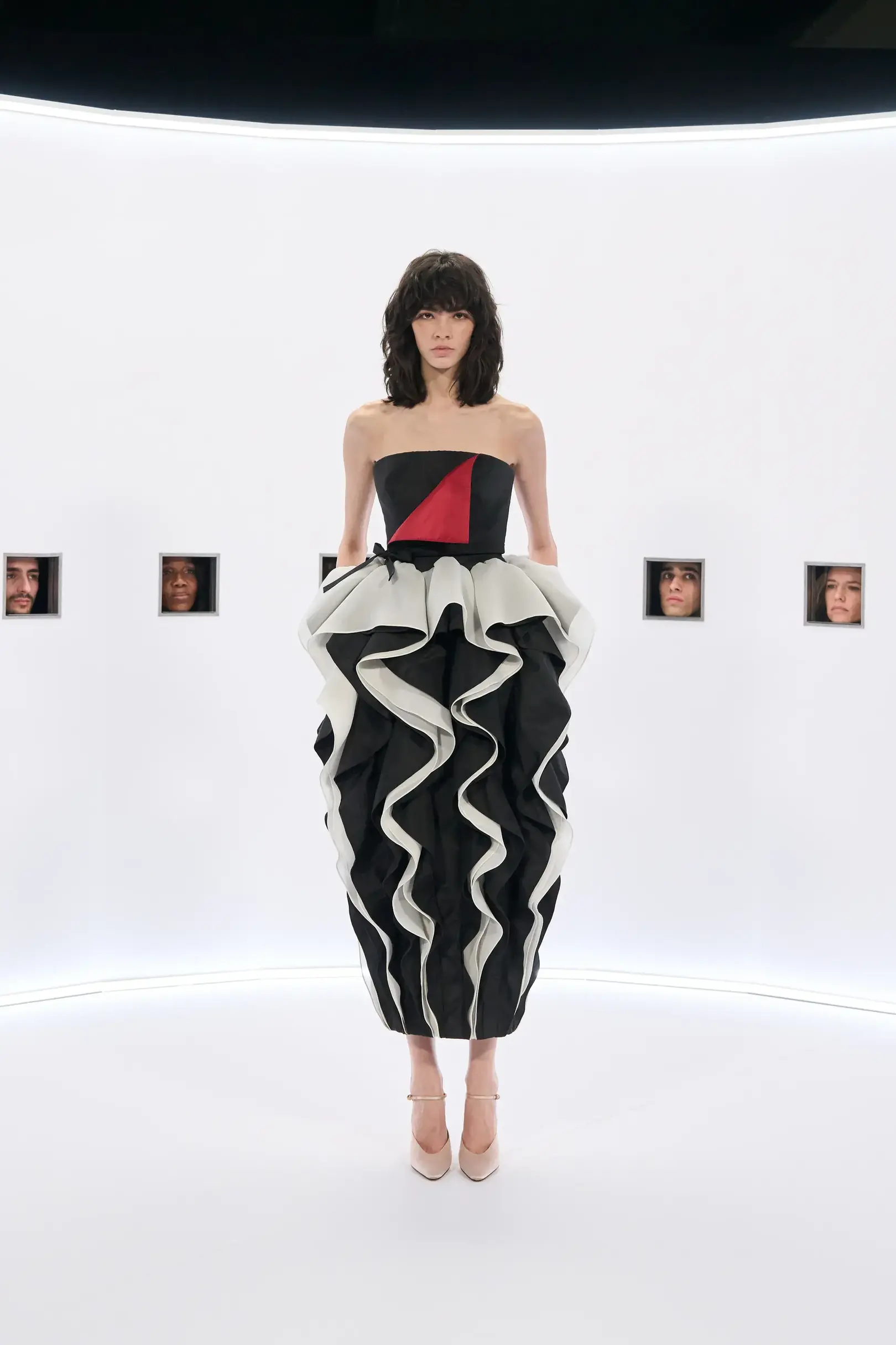 Показ Valentino Haute Couture весна–лето 2026 в изложении Алессандро Микеле превратился в сложный арт-перформанс на грани моды, театра и визуального эксперимента — оммаж Валентино Гаравани и его любви к кино и экранной красоте. Эклектика здесь работает как язык: наивная, нарочито театральная, временами бурлескная, она соединяет невинность и вуайеризм, создавая атмосферу зыбкой, киногеничной иллюзии.