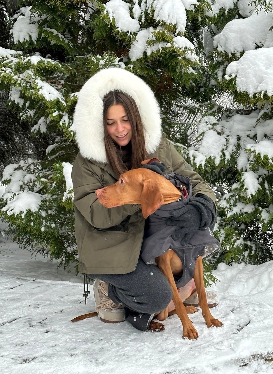 С Ари гуляю в меховой парке Yves Salomon или легком пуховике r13, в вязаном костюме и удобных «луноходах» от Inuikki. Если мы едем погулять в лес, например, в Мещерский парк, беру с собой термос с бульоном.