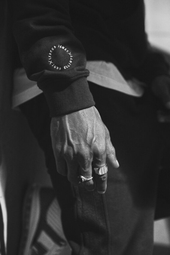 В нее вошли базовые спортивные вещи в черно-белой гамме, а также кроссовки LeBron James x John Elliott Icon QS, вдохновленные классической моделью Nike LeBron 8.