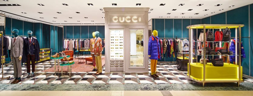 На втором этаже ЦУМа открылся новый мужской корнер Gucci. На площади 100 квадратных метров представлены одежда, обувь, часы и другие аксессуары из актуальных коллекций pre-fall и осень-зима 2018.