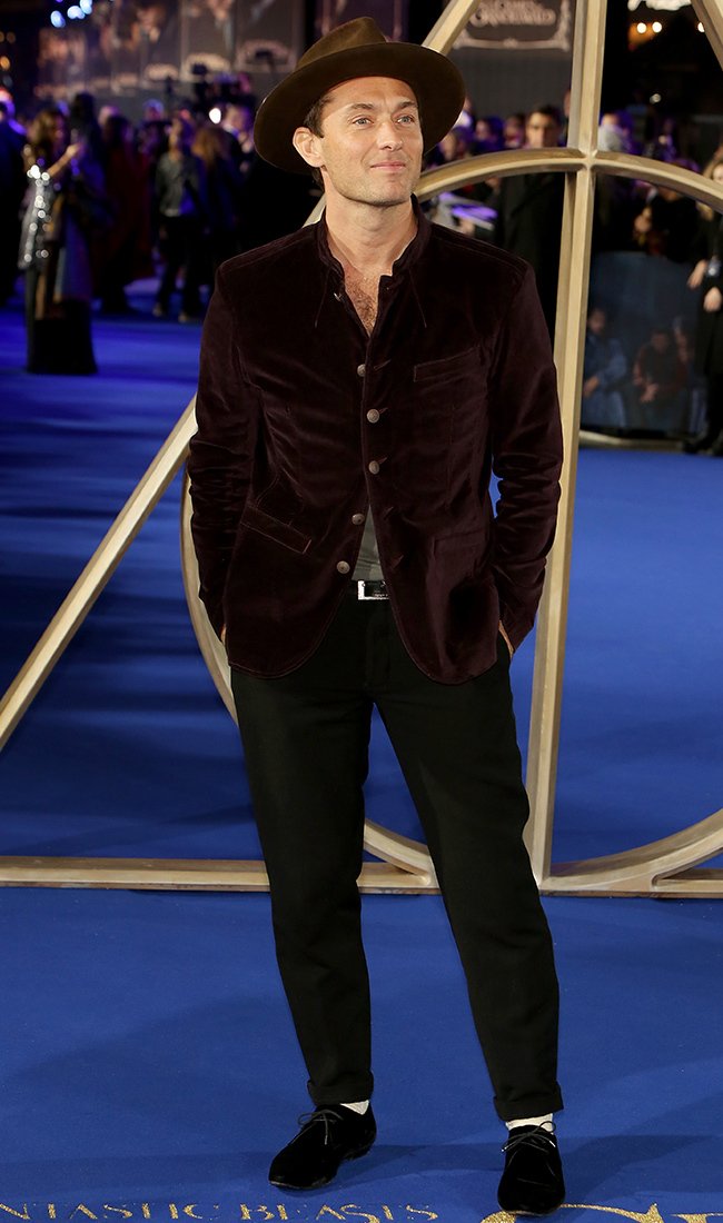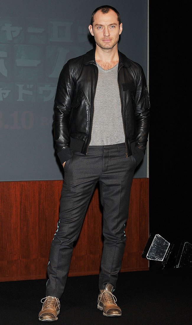 На красных дорожках Джуд виртуозно обыгрывает образ богемного модника, выгуливая шляпы, шарфы, винтажные очки и пиджаки из бархата. По будням все тоже по высшему модному разряду: Лоу в байкерской косухе и потертых джинсах — мечта любого фотографа street style.