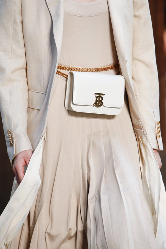 На показе модели носили сумку в руках, перекидывали через плечо и оборачивали ремешок вокруг талии. Намек очевиден: TB Bag бесконечно практична и позволит дать волю модной фантазии.