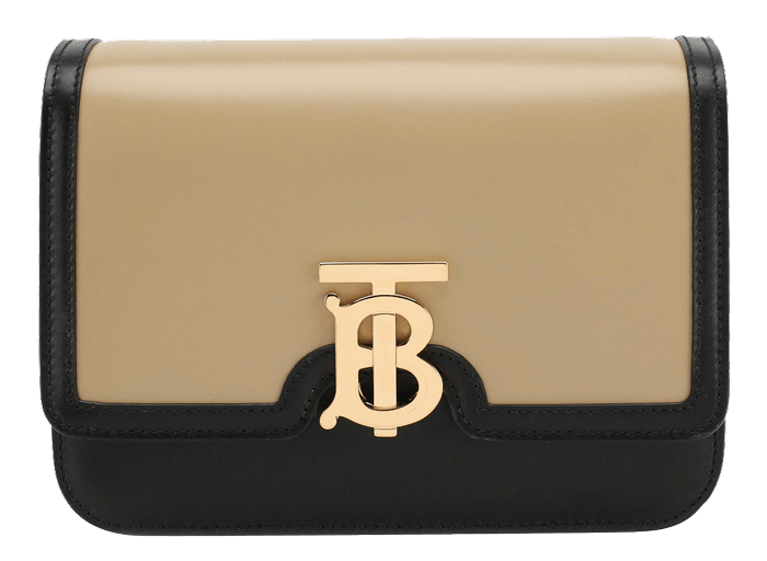 Самая заметная деталь сумки — золотая монограмма TB, отсылающая к Томасу Берберри — основателю марки.