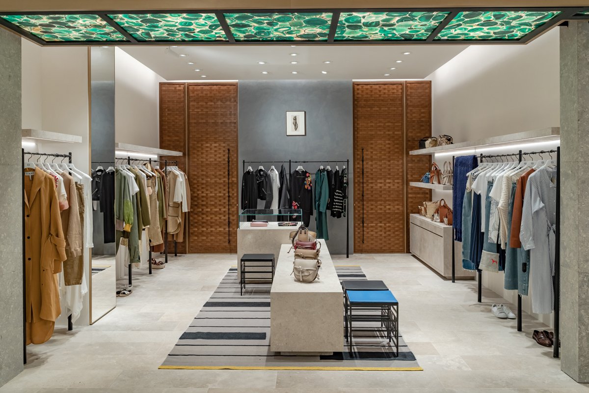 На третьем этаже ЦУМа открылось пространство Loewe, где все напоминает о родине бренда Испании. В интерьере использованы зеленый агат, дерево и кварц (эти же натуральные материалы можно встретить в бутиках марки в Мадриде), а фасад пространства украшает скульптура, вдохновленная испанскими винодельнями. Но главное — это, конечно, весенне-летняя коллекция Loewe, где кстати, тоже много отсылок к культуре солнечной жизнерадостной страны.