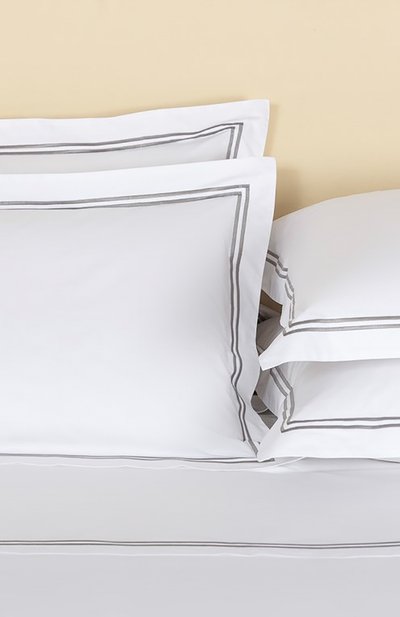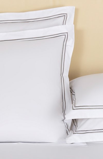 У квадратной наволочки много достоинств: например, универсальный белый цвет и вышитый полосатый узор в нескольких оттенках серого. Но главное преимущество заключается в материале. Белье выполнили из особенно приятного на ощупь хлопкового атласа, который почти не мнется и не вызывает аллергии.