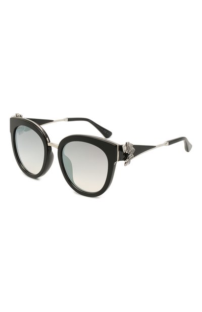 Для создания черных солнцезащитных очков использовали ацетат базового черного цвета. Материал задал тон модели, но от этого она не стала смотреться просто. Все дело в акцентах: форму cat eye деликатно подчеркнули металлическими вставками, а дужки сделали фигурными и сделали их выразительнее композицией из прозрачных кристаллов. С ними перекликаются зеркальные серые линзы, на 100% защищающие от вредных УФ-лучей.
