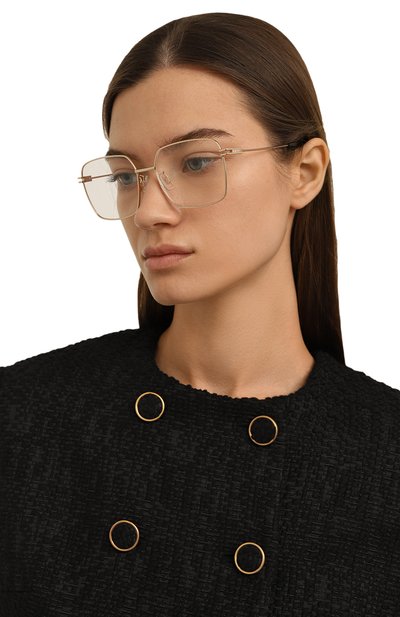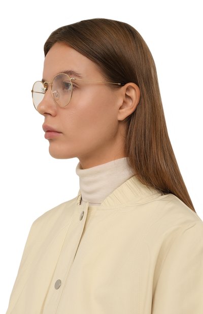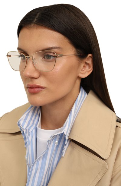 Лаконичная оправа формы авиаторов с двойным мостом сделает образ более эстетским. Для изготовления модели мастера марки использовали легкий полированный металл с золотистым покрытием. Узкие дужки дополнены коричневыми заушниками с черепаховым мотивом.
