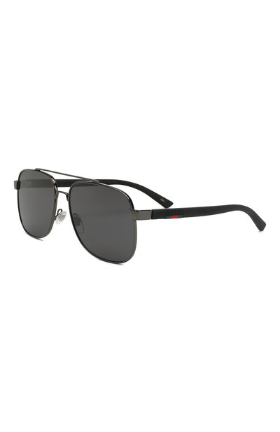Тонкая оправа этих черных авиаторов изготовлена из легкого гипоаллергенного сплава (рутениевое покрытие защищает материал от царапин). Темно-серые линзы из прочного поликарбоната задерживают 100% ультрафиолетовых лучей. Широкие матовые дужки декорированы вставками в виде знаковой для бренда ленты Web.