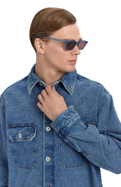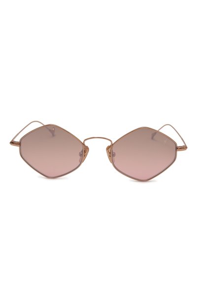 Солнцезащитные очки с узкой черной оправой созданы, чтобы солировать в образе. Взять на себя главную роль аксессуару помогает не только двойной мост, разъединенный вертикальной вставкой, но и ярко-розовые линзы. Они отражают ультрафиолетовые лучи так же хорошо, как классические темные. Изделие выполнили из легкого прочного металла.