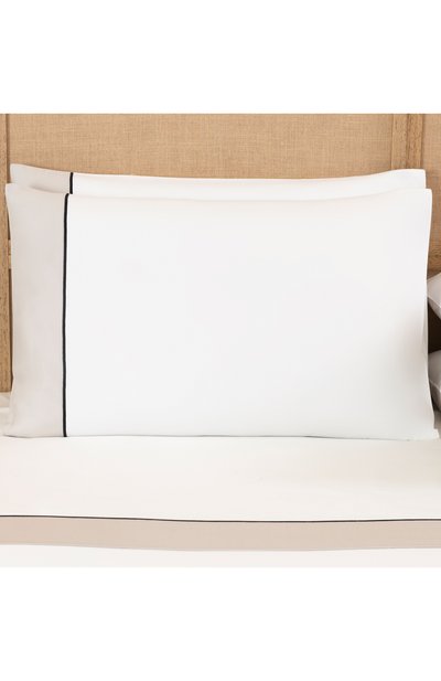 Кремовый сатин из отборного хлопка с длинными волокнами сделал прямоугольную наволочку почти невесомой и шелковистой на ощупь. Гладкая ткань отражает лучи так же хорошо, как металлизированный текстиль, поэтому на свету широкий бежевый кант на краях кажется золотистым.