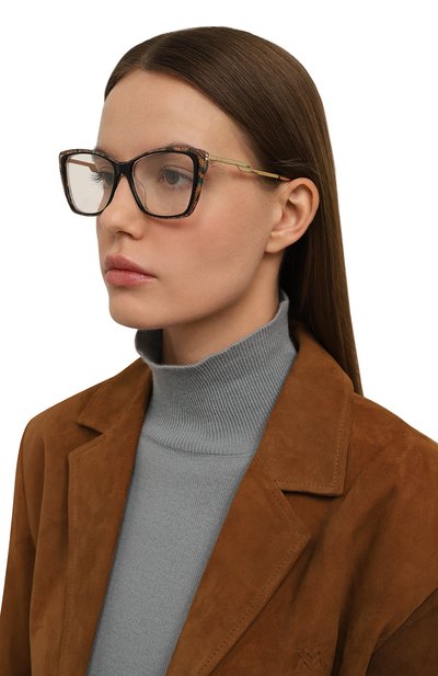 Черную оправу cat eye построили на контрасте форм: подчеркнуто широкому верху противопоставили нижнюю часть рамки и узкий мост из легкого сплава. Особенно эффектно аксессуар выглядит благодаря элементам из глянцевого ацетата. Такая модель будет хорошим акцентом в образе.