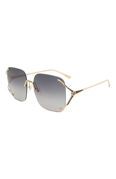 Солнцезащитные очки с раздвоенными концами тонких дужек и квадратными линзами сделают любой образ выразительнее. Светло-серые градиентные стекла обеспечивают 100% защиты от ультрафиолетовых лучей. Тонкую оправу изготовили из легкого металла с золотистым напылением.