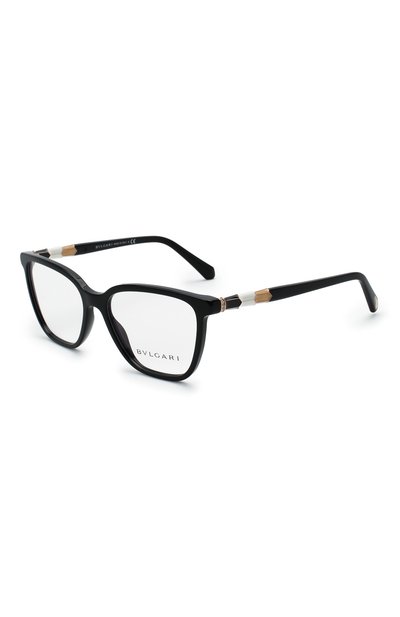 Для изготовления оправы использовали глянцевый ацетат универсального черного цвета. Разнообразие в лаконичный вид аксессуара вносят шарниры, инкрустированные вручную прозр ачными микрокристаллами, и трехцветный эмалевый узор, который имитирует чешуйки на коже змеи. Последний поддержали брендированными пластинами на заушниках.
