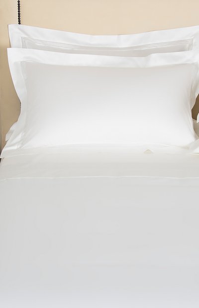 Квадратная наволочка молочного оттенка сшита из нежного хлопкового сатина, который при прикосновении кажется шелком. Чтобы добиться такой фактуры, мастера марки выбрали сырье с длинными волокнами, превратили его в тонкие нити, а затем особенно плотно переплели их друг с другом. Гладкость ткани подчеркивает узкий рельефный кант вдоль широкой оборки.