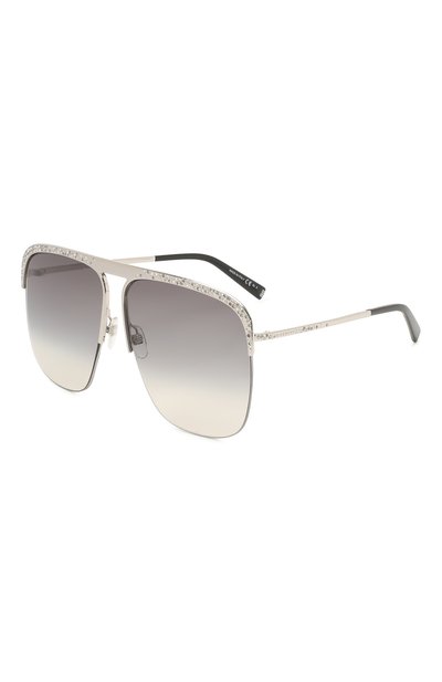 Авиаторы в пол-лица выведут образ на новый уровень. Все дело в серебристой оправе из легкого прочного металла, инкрустированной сверкающими миниатюрными кристаллами. Серые градиентные линзы из устойчивого к царапинам материала обеспечат 100% защиты от ультрафиолетовых лучей в городских условиях.