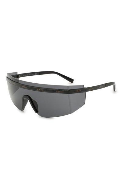Эти черные солнцезащитные очки похожи на горнолыжную маску. Такие ассоциации вызывает цельная поликарбонатная линза с шорами, которая не оставит шансов вредным ультрафиолетовым лучам и ярким бликам. Аксессуар с полуободковой брендированной оправой, переходящей в дужки, правильно расставит акценты в образе.