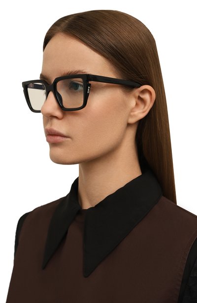 Очки из легкого прочного ацетата ставят знак равенства между эффектным внешним видом и комфортом. За первое отвечает оправа формы cat eye, а за второе — линзы со специальным прозрачным покрытием. Оно блокирует синий спектр, поэтому глаза меньше устанут при длительной работе с гаджетами.